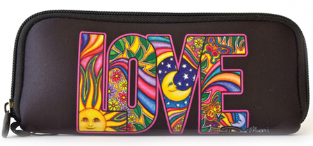 Dan Morris's LOVE, printed on a rugged, protective, waterproof neoprene pouch, for all the stuff you can't be without--cash, stash, pipes, tamps, phones! 7.5"w x 3.25"h x 1"d Artist: Dan Morris